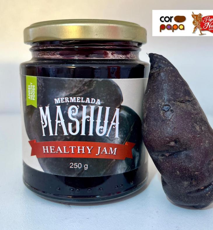Mermelada saludable de mashua (250 g), elaborada con este superalimento andino rico en antioxidantes y vitamina C. Nuestra mermelada cuenta con certificaciones orgánicas internacionales, siendo ideal para fortalecer el sistema inmunológico y promover el bienestar.